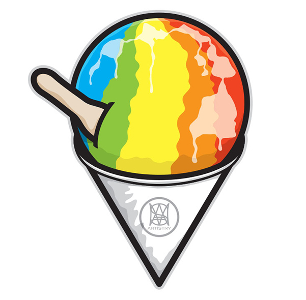 Cool decal of a classic local treat! The Hawaiian islands are disguised as a condensed cream topping drip. Size: 2.6" tall and 3.25" wide.