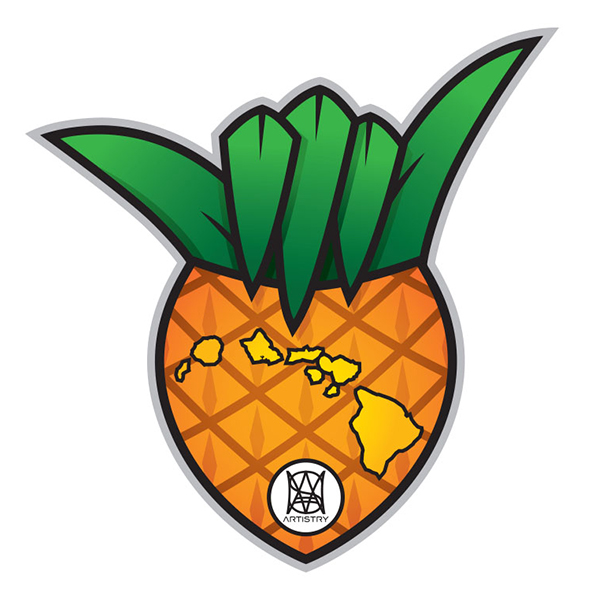 Pineapple a Shaka and the Hawaiian Islands, what a combination. This will look awesome on your flask or car!! Size: 3.6" wide and 4" tall